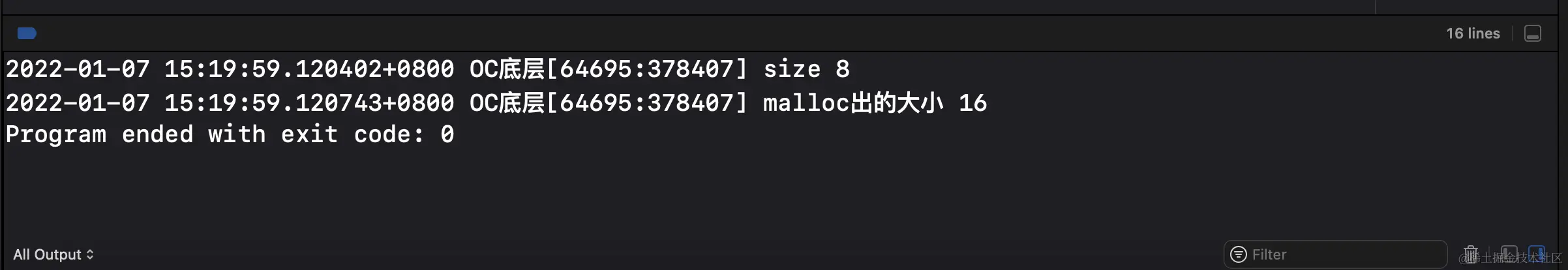 NSLog(@"malloc出的大小 %zd", malloc_size((__bridge const void *) obj));
