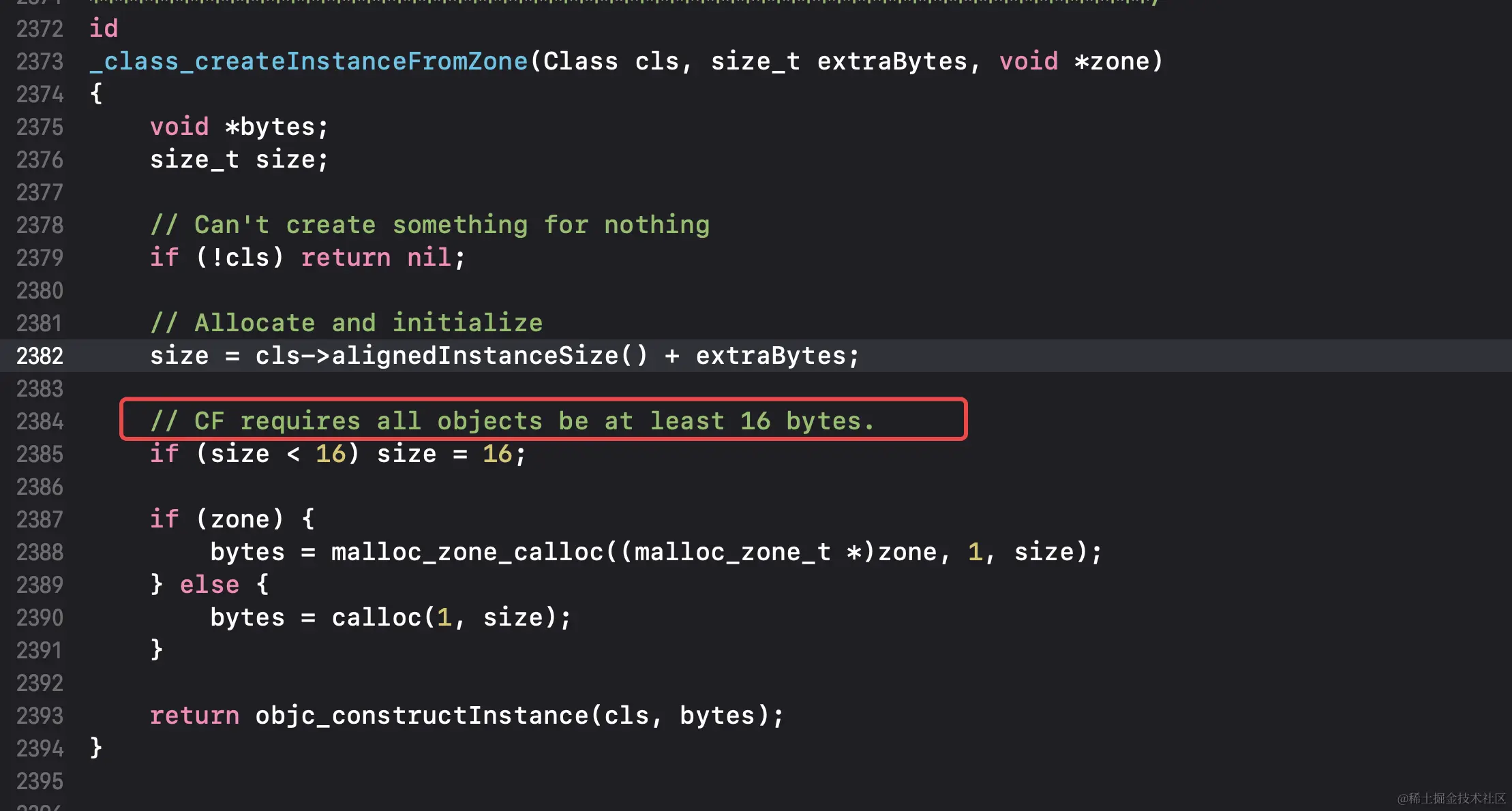 通过OC源码可以发现CoreFoundation对一个对象的大小做了硬性规定,如下图所示: