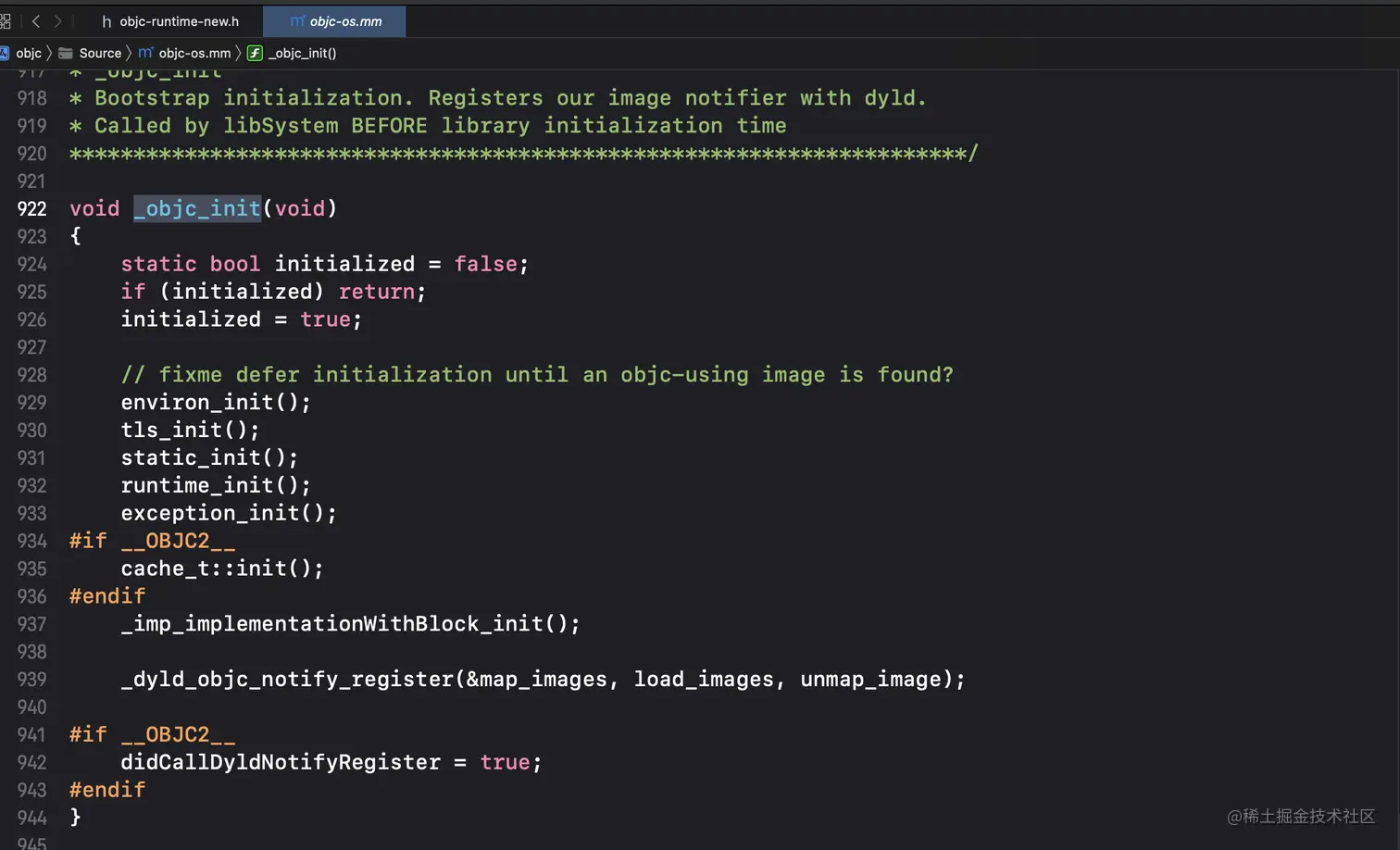 首先查看objc-os.mm文件,找到对象创建的方法_objc_init