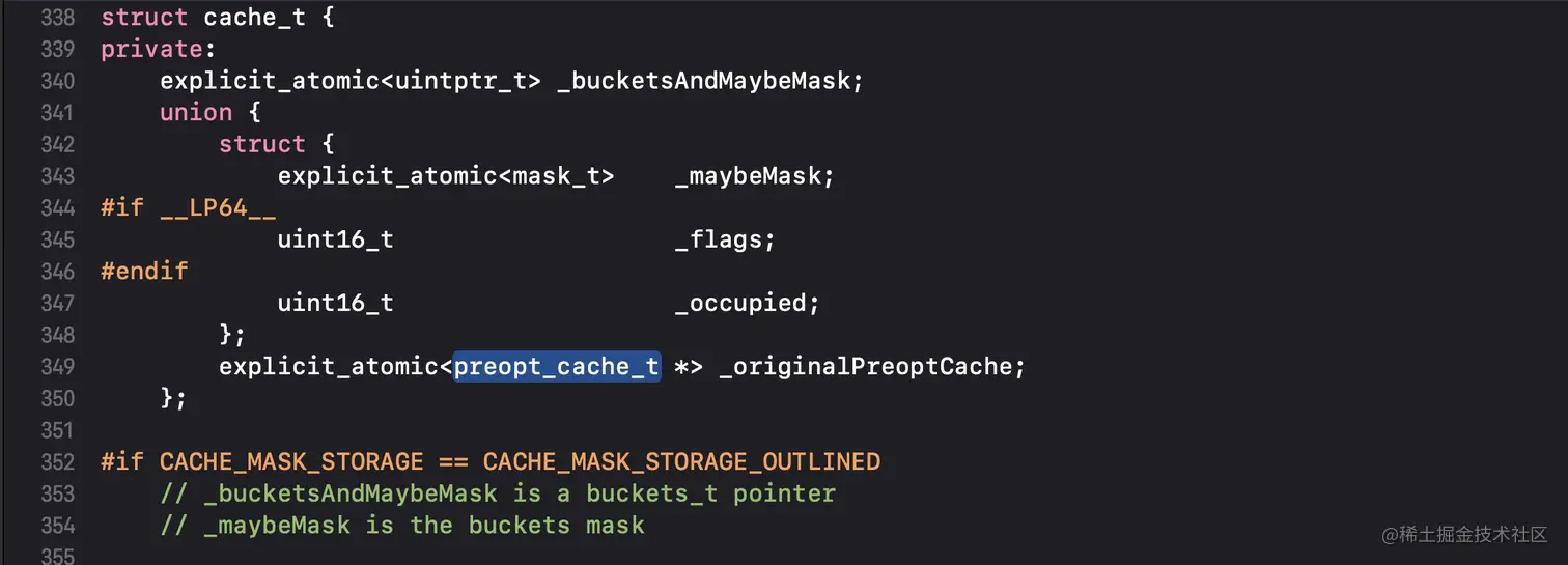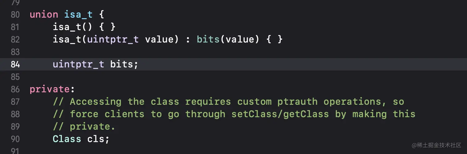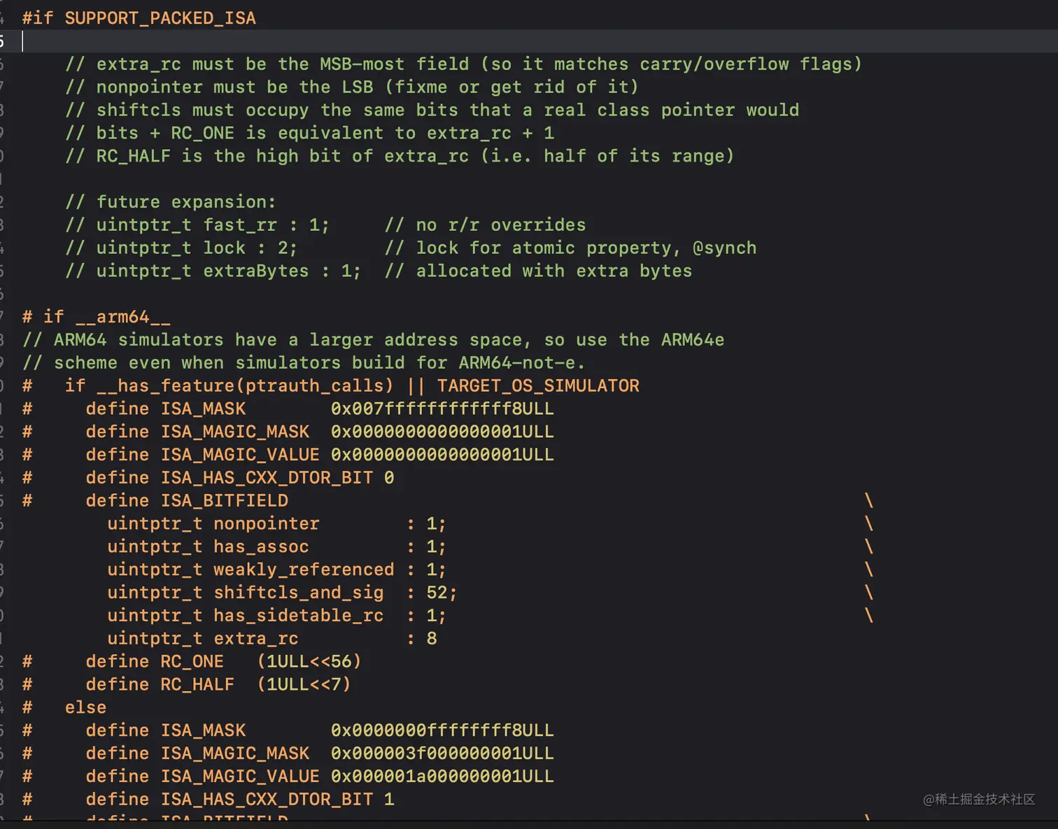 isa_t是一个共用体类型,uintptr_t 会把isa配上不同的ISA_MASK,还使用了位域存储了更多的信息,如下图所示