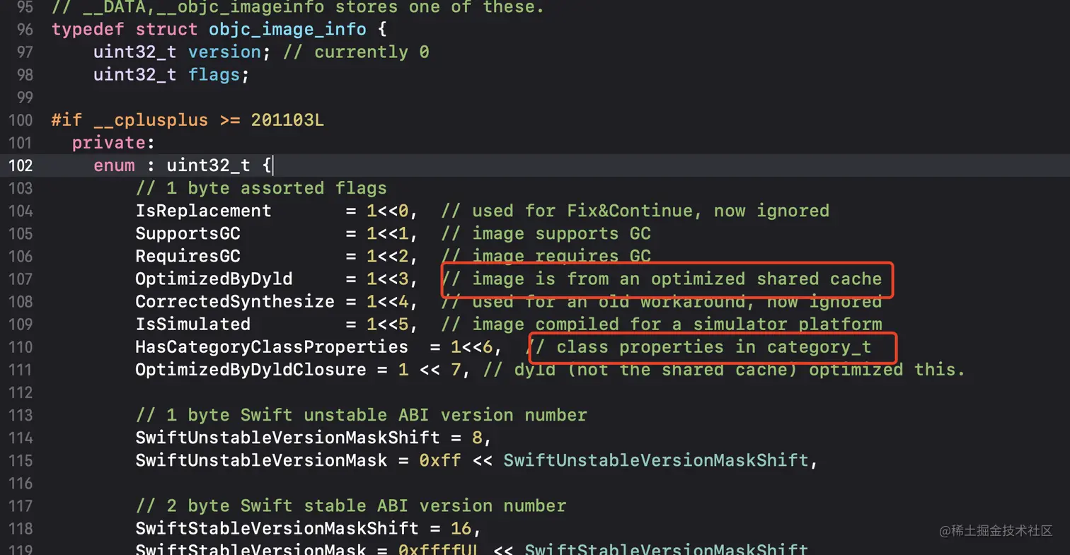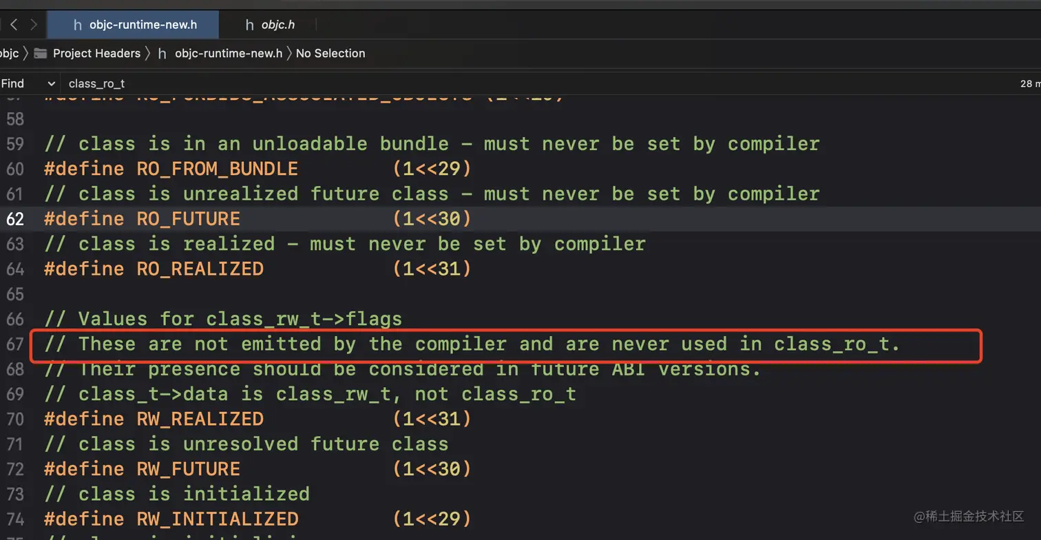 在objc4之后,class_rw_t 会存放布局的相关信息,其中flags会存放模拟器平台、共享的缓存信息,flags里面的信息在编译之后是不会放入class_ro_t,并且从不会被使用,class_rw_ext_t(runtime时class_rw_ext_t中信息还可以修改)会存放class_ro_t_authed_ptr只读的类型的类的信息,具体可在objc-runtime-new.h中查看
