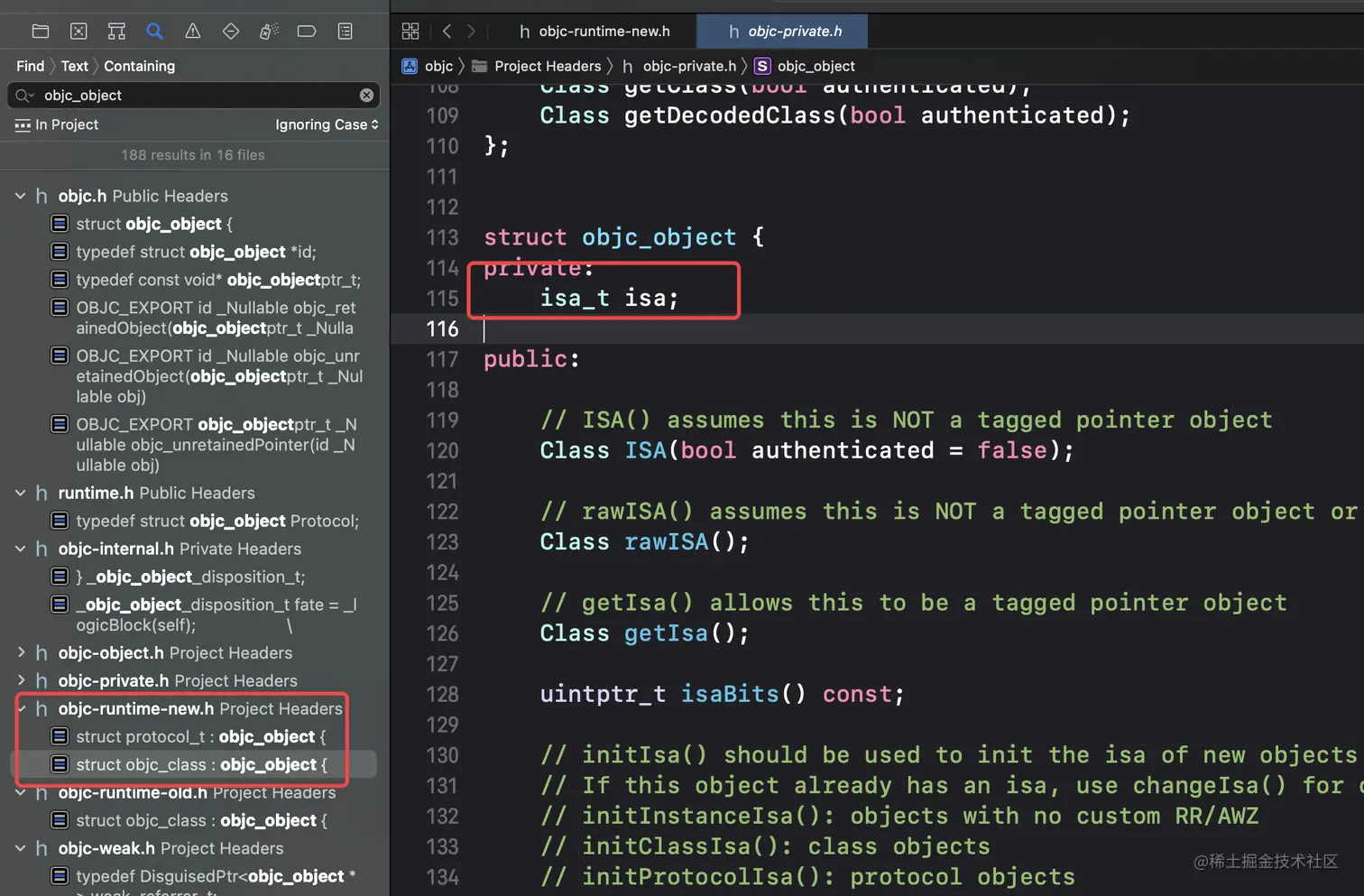 学习runtime之前先回顾一下isa,在arm64架构之前isa指针就是存放的Class对象的地址或者MetaClass对象的地址,arm64架构之后isa进行了优化,类型是共用体类型,isa需要&_ _ISA_MASK才是真正的地址,可以查看OC的源码进行确认
