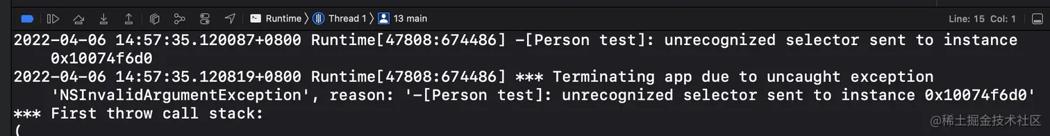 如果动态方法解析和消息转发都没有,则会报出这个经典的错误