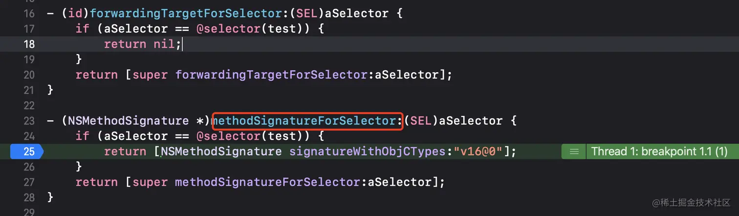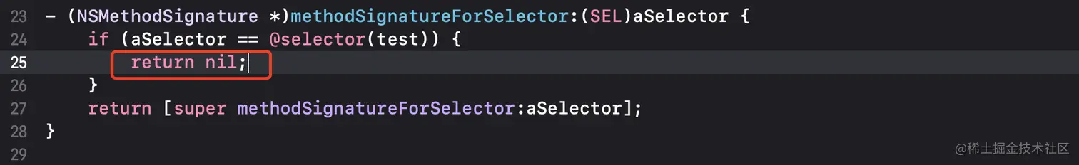 如果methodSignaltureForSelestor方法的返回签名为空,则报错