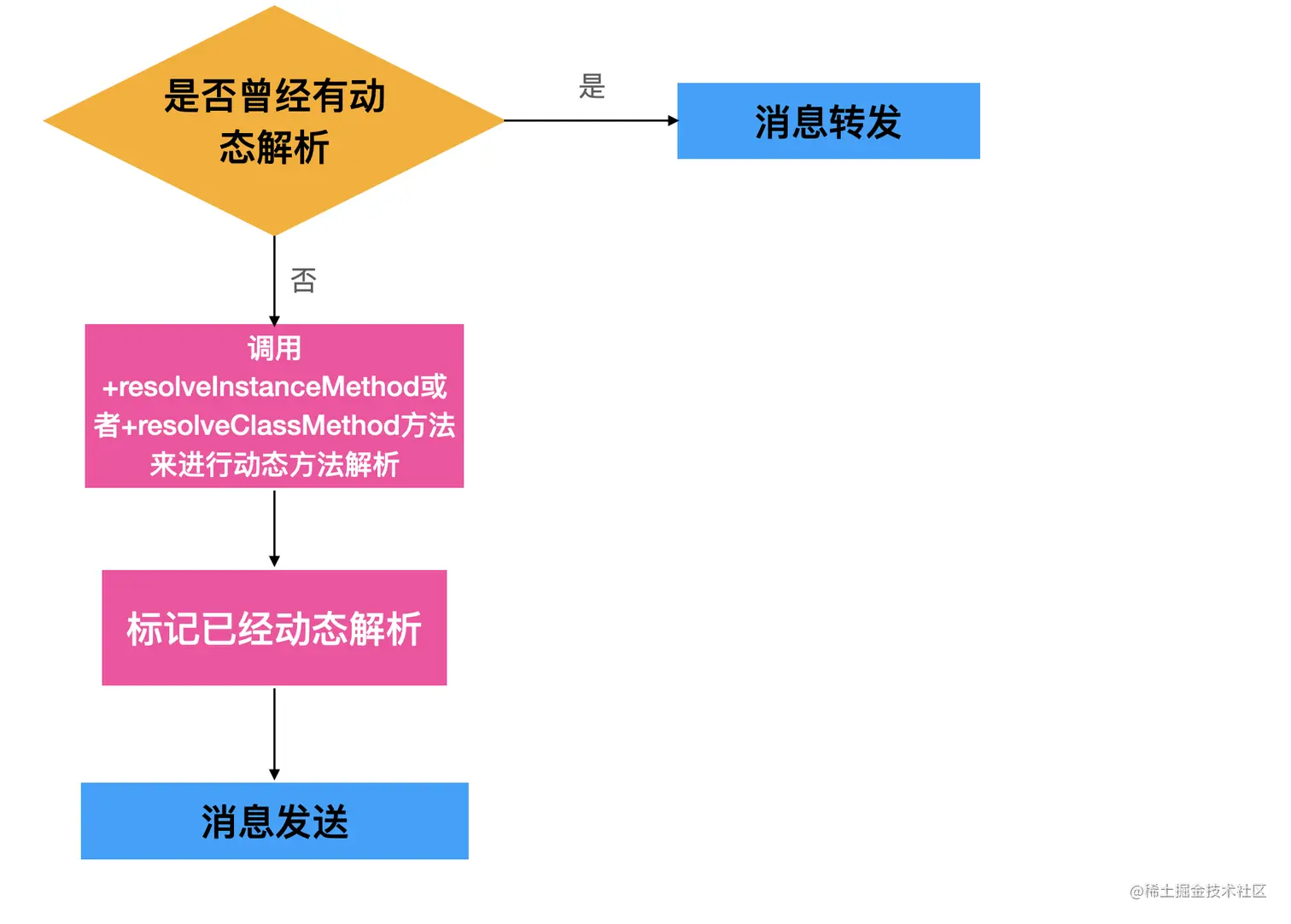 通过resolved获取方法的相关信息,再进行对imp进行判断,如果imp存在则输出动态方法解析出的方法选择器的名字和对应的imp实现,如果没有方法解析器添加进去,则输出没有找到方法的实现,输出方法选择器,但没有对应的方法实现,如果是类方法则调用的是resolveClassMethod