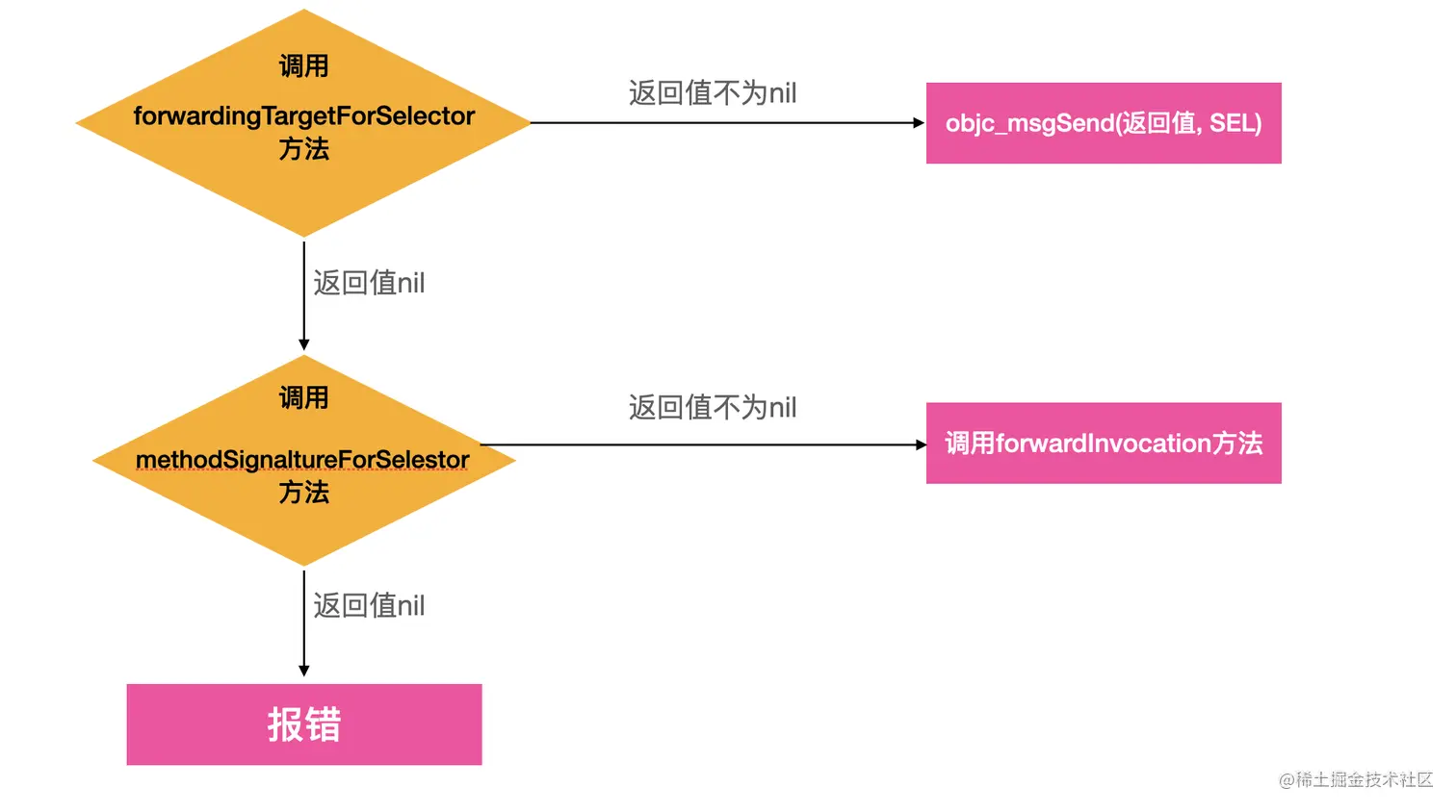 如果methodSignaltureForSelestor方法的返回值不为空,则调用最后一步,调用forwardInvocation方法,完成消息转发