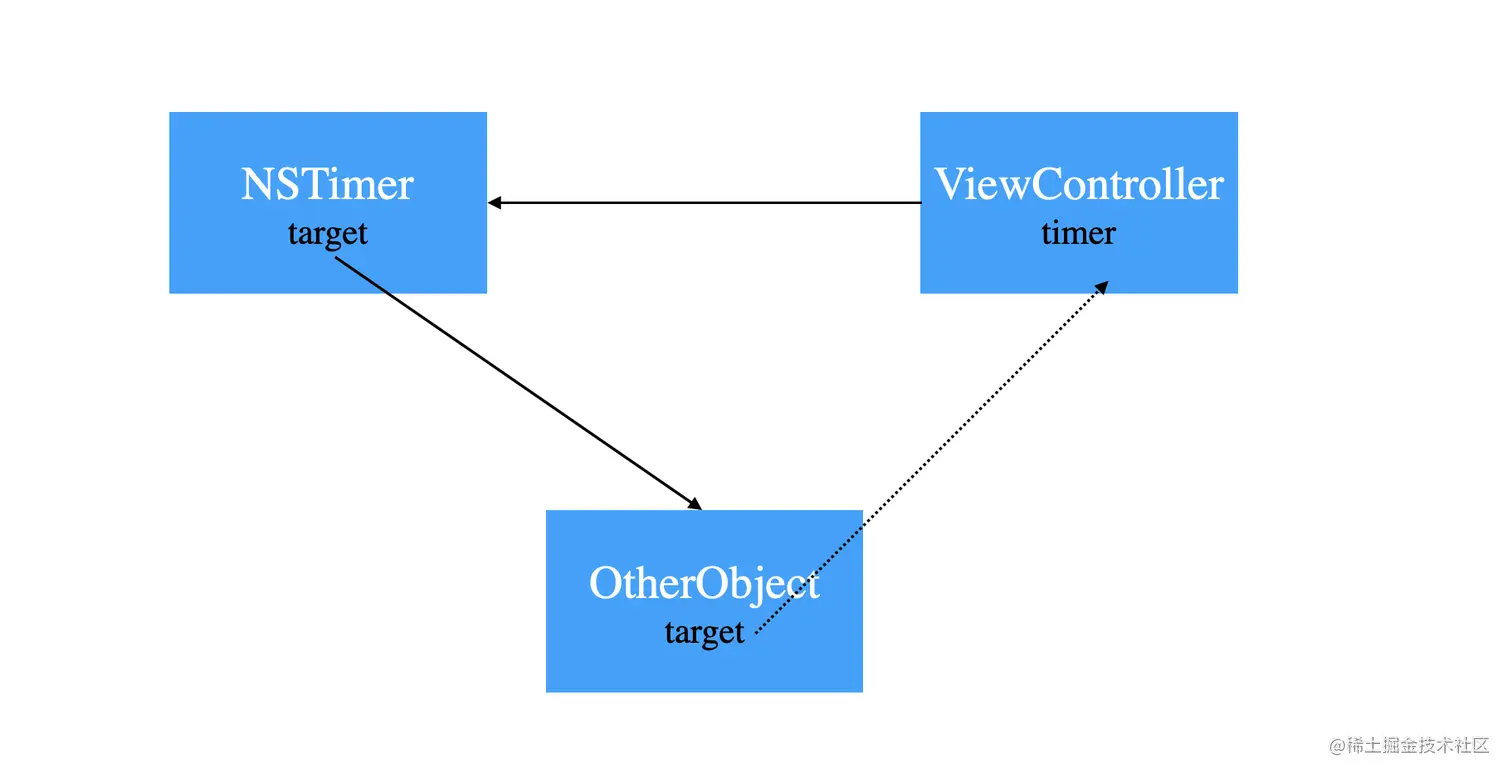 CADisplayLink、NSTimer会对target产生强引用,如果target又对它们产生强引用,那么就会引发循环引用