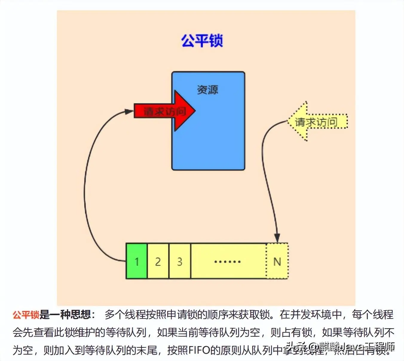 ReentrantLock是Java中的类 : 继承了Lock类,可重入锁、悲观锁、独占锁、互斥锁、同步锁。