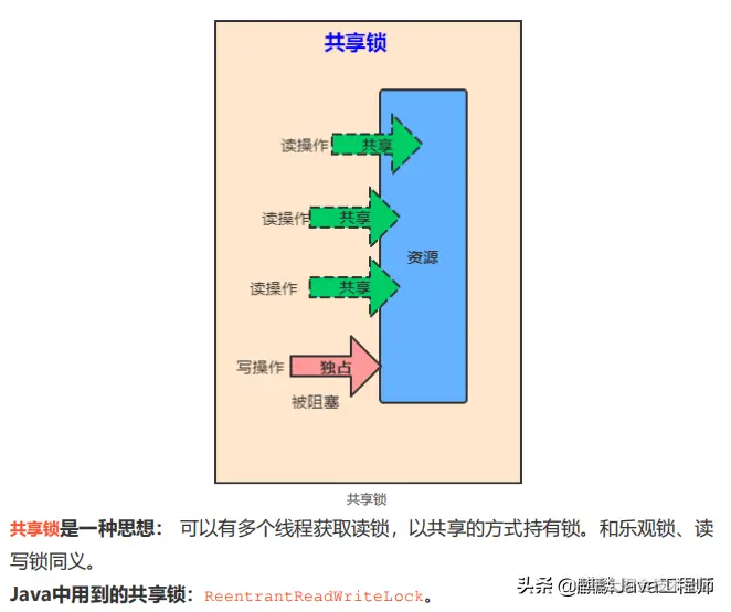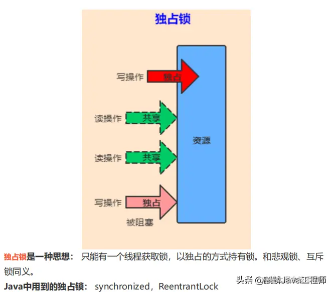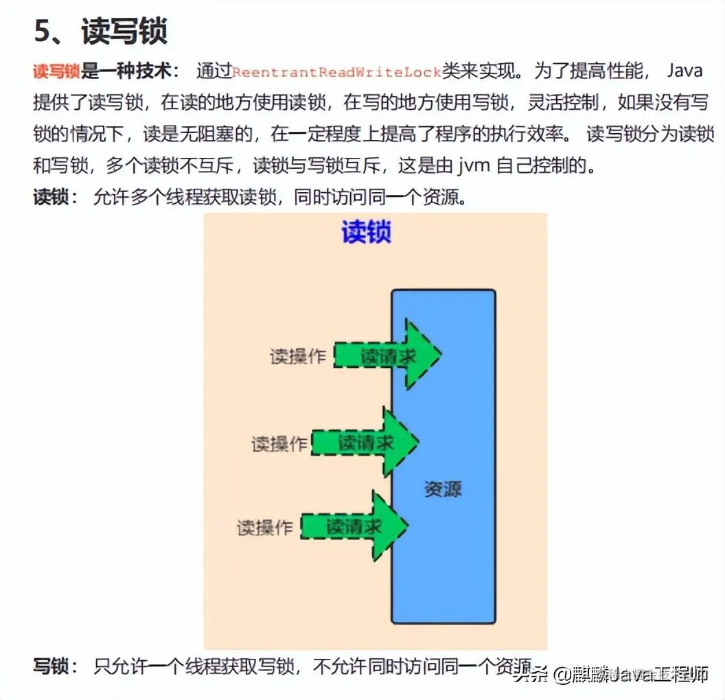 如下图所示,可以同时进行读操作,读的时候其他线程不能进行写操作。