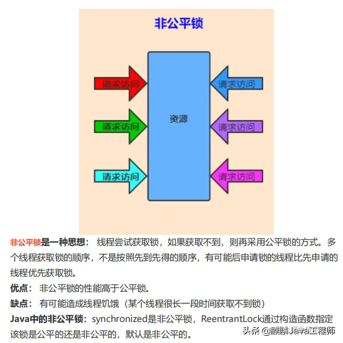 - 4.ReentrantLock 可以实现公平锁、非公平锁,默认非公平锁,synchronized 是非公平锁,且不可更改。