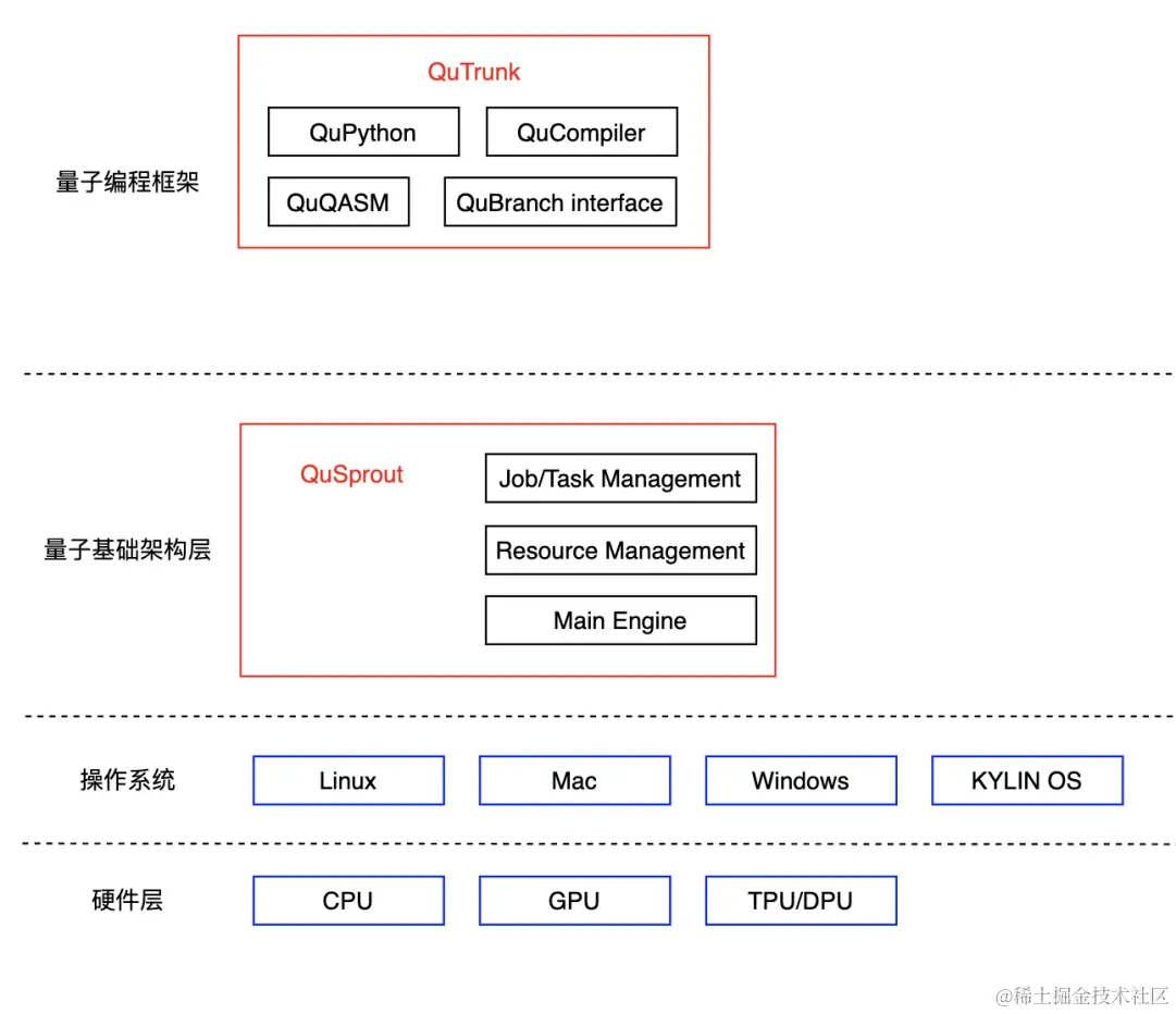 量子模拟方面,QuSprout 通过 RPC 与 QuTrunk 量子编程框架连接,主要负责量子线路的任务管理、