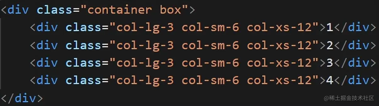 之后在div类名里加入栅格系统,当在电脑端显示时,每个盒子只占12份中的3份,在平板端显示时占12份中的6份,在手机端显示时,占12份.达到自动缩小适配的效果.