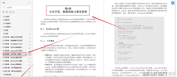 **第6章分页开发、数据校验与事务管理;**本章首先介绍MyBatis提供的RowBounds分页的使用和原理,以及分页插件PageHelper的使用和原理;然后介绍Spring的数据校验以及Spring和MyBatis事务管理。