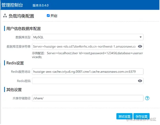 完成上述环境准备后,我们需要依次登录应用服务的管理控制台站点(http://{应用服务器外网地址}:22345/UserService/ManagementPage/LoginPage),完成集群配置。配置页面在【设置】选项卡的【负载均衡配置】菜单。