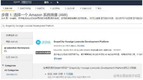 - 镜像:在【亚马逊云科技Marketplace】中搜索“GrapeCity Huozige Lowcode Development Platform”,选择官方提供的AMI镜像