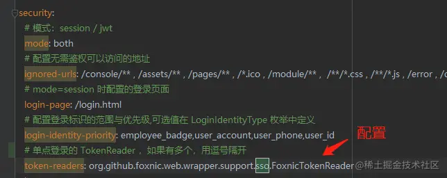 TokenReader 定义后需要在 YML 文件中的 security.token-resders 指定,可以指定一个,也可以指定多个,若指定多个则按顺序调用。如下图所示: