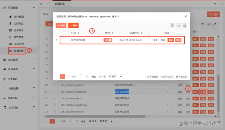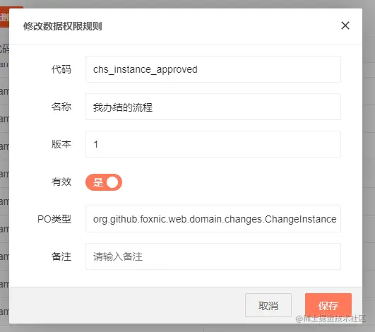 代码:数据权限代码,全局唯一,会在 java 代码中代入,以指定使用哪个数据权限规则。