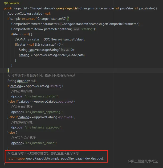 配置数据权限规则以后,需要在代码中指定使用某个数据权限规则。
