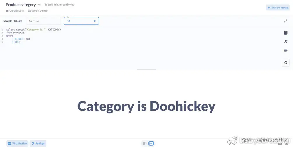 我们在上面使用的示例仪表盘仅包括使用Metabase提出的问题查询生成器,但你也可能本机查询希望在仪表盘上进行交互。