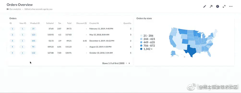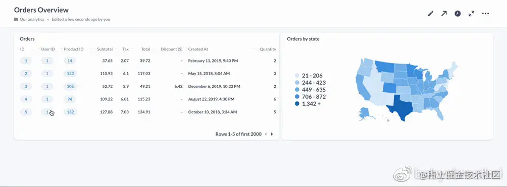 在本文中,我们将重点介绍自定义单击行为的选项之一:转到自定义目的地。我们将使用Metabase的示例数据库向你展示自定义目的地工作,并向你展示一些创造互动体验的巧妙技巧。