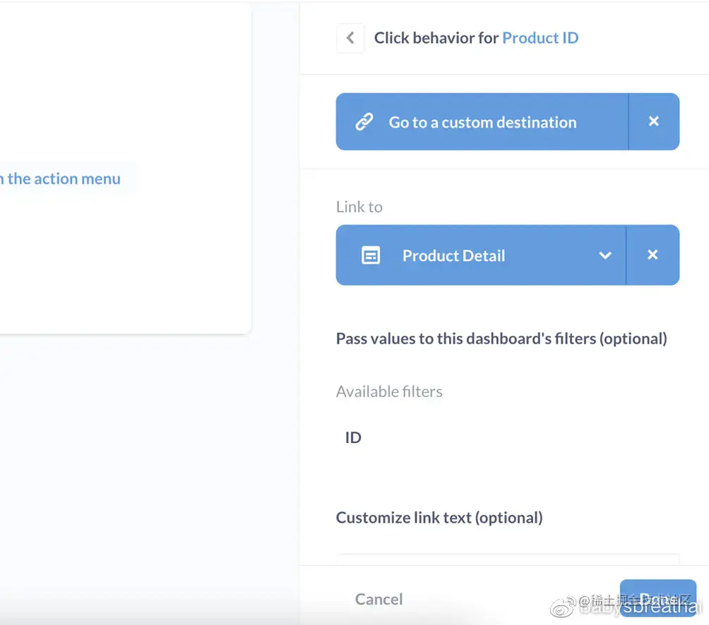 让我们更改单击行为以将人员发送到产品详细信息仪表盘。