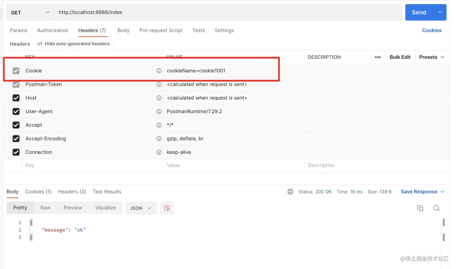 在postman中携带cookie访问index:
