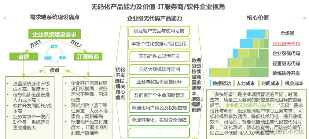 无代码平台技术大大降低了对应用开发人员的要求,能够有效将精力聚焦于业务逻辑,大大提高了开发效率。