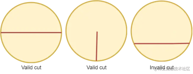 - 该切割是两个端点在圆上的线段,且该线段经过圆心。