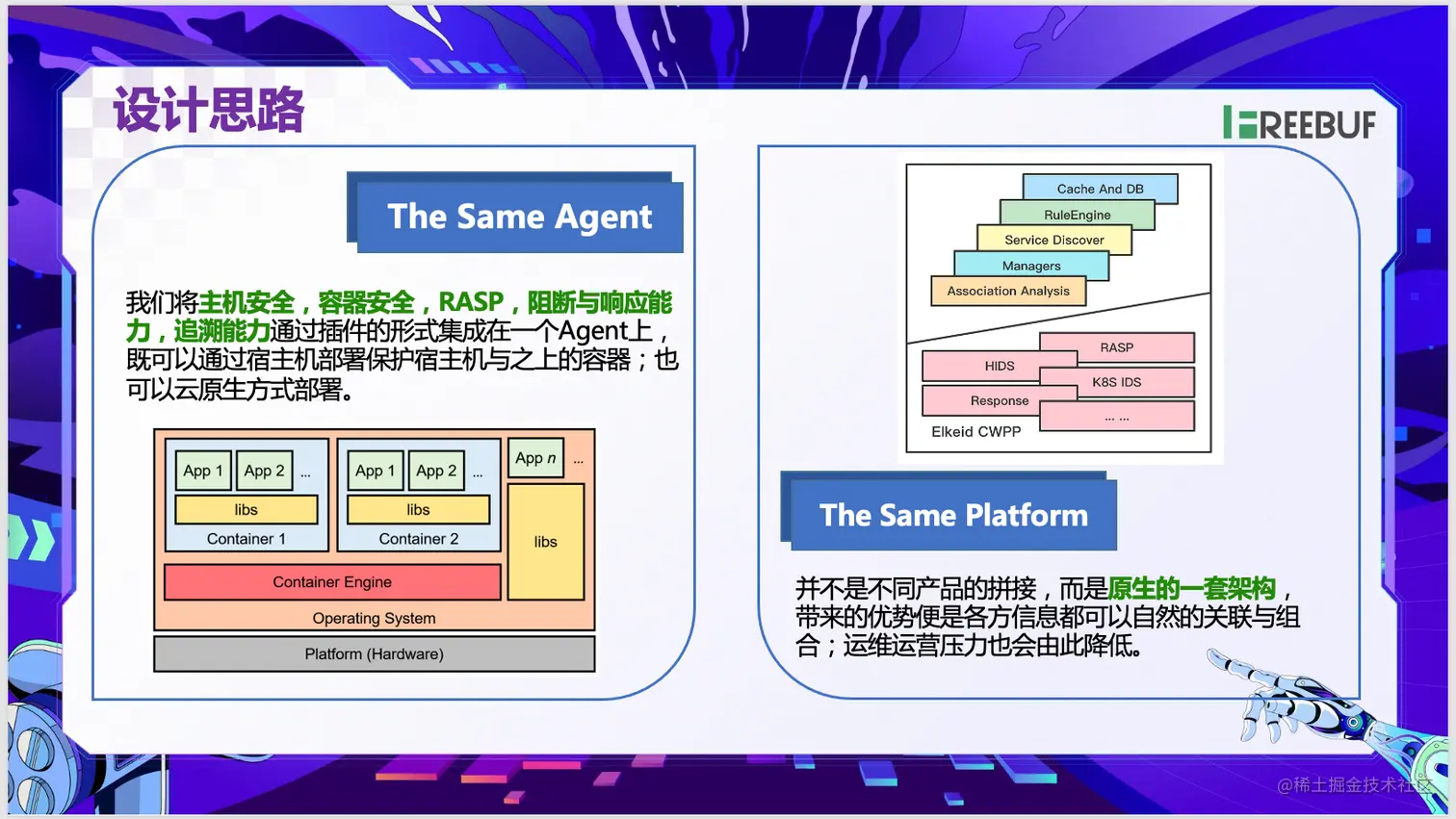 CWPP从设计之初便遵循为物理机、虚拟机、容器和无服务器工作负载提供一致的保护和可见性的原则 ,将主机安全, 容器安全 , RASP ,阻断与响应能力,追溯能力通过插件的方式整合在了一个agent上,同时 字节内部 跨地域 跨云的 部署需求 ,也催生了 CWPP对 多云和 混合云 下的 支持 能力。