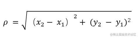 要度量空间中点距离的话,有好几种度量方式,比如常见的曼哈顿距离计算,欧式距离计算等等。不过通常KNN算法中使用的是欧式距离(全称:欧几里得度量),先拿二维平面为例,二维空间两个点的欧式距离计算公式如下: