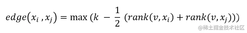 边e(Xi,Xj)的权重定义为k与共有的KNN的最大平均排名之间的差,具体公式如下: