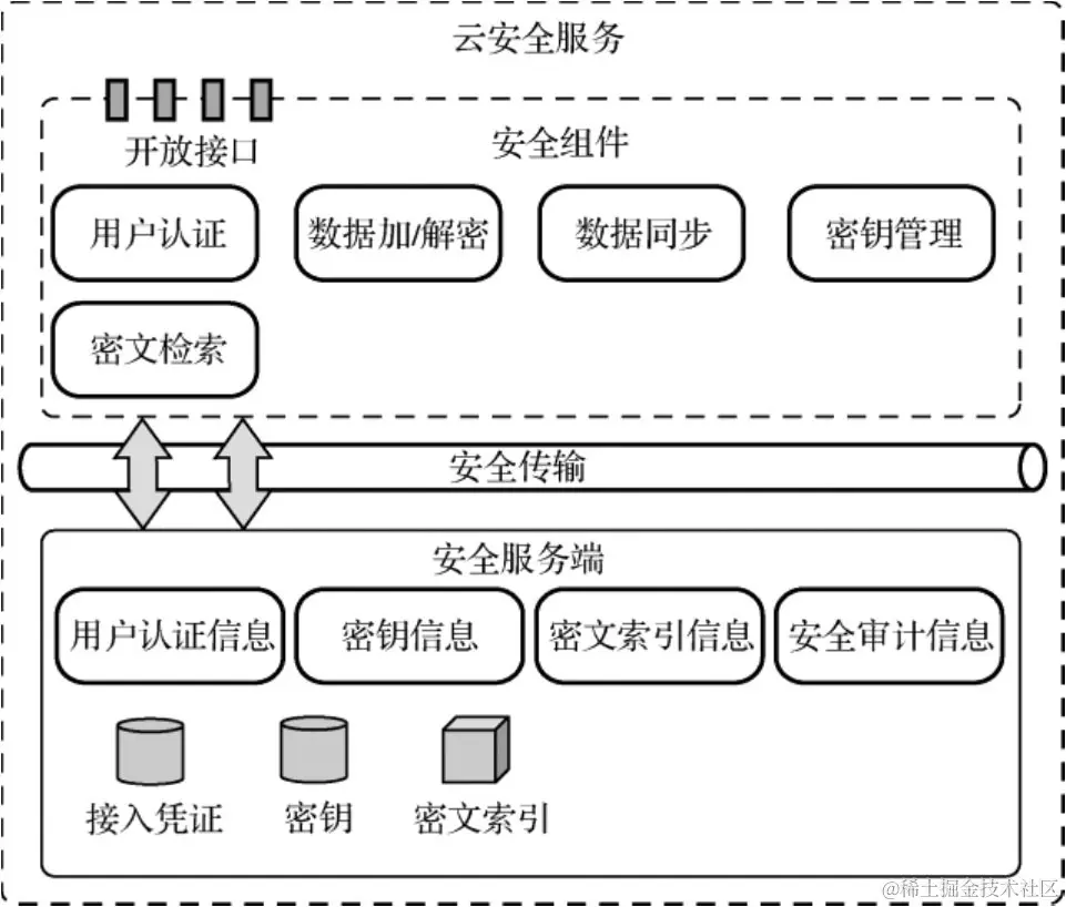 (2)数据同步∶通过安全组件中的数据同步接口对外提供数据同步服务,将用户上传的数据密文索引信息发送至安全服务端进行存储。