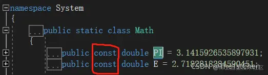 注:将类类型和结构体类型设为常量时不能用const进行修饰,而需要使用static readonly进行修饰;const只能对值类型进行修饰