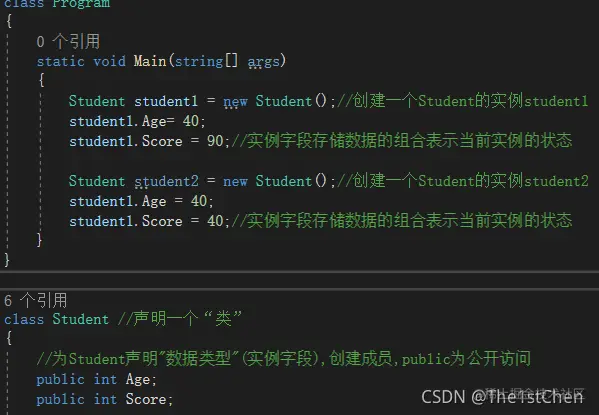 student1.Score = 90;//实例字段存储数据的组合表示当前实例的状态