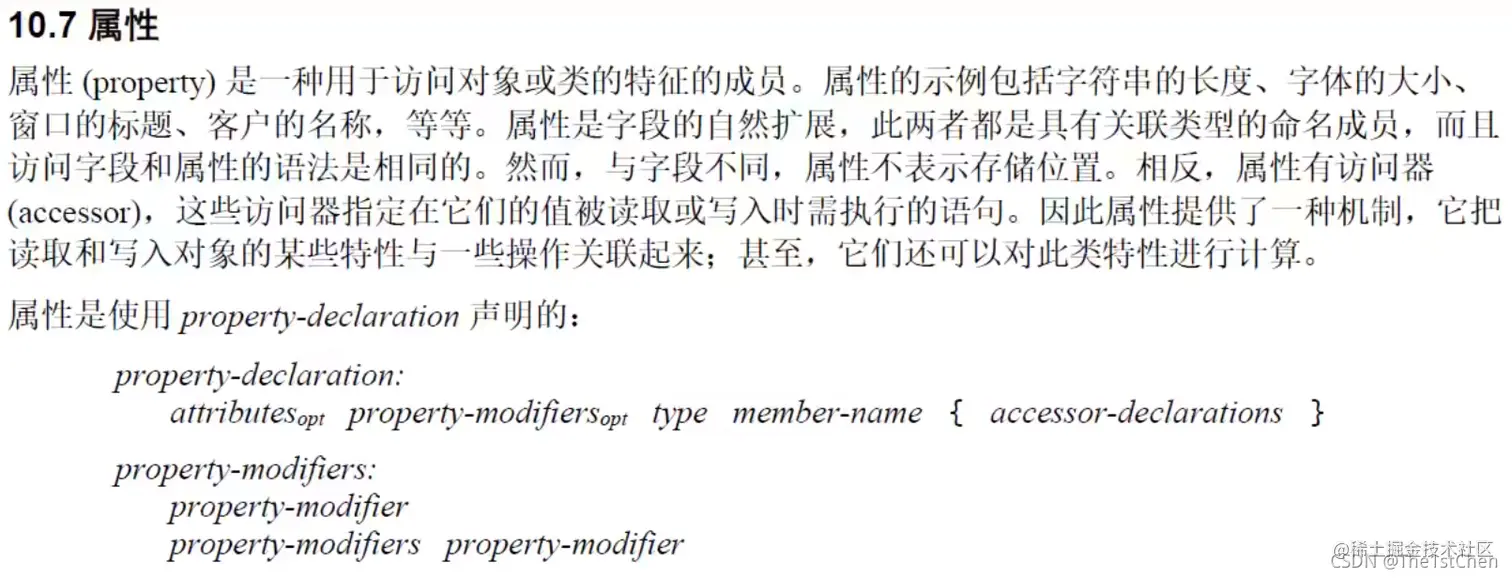 (1)属性(property)是一种用于 “访问对象“ 或 ”类型” 的特征的成员,而特征能反映他们的状态。