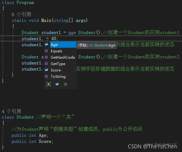 student1.Score = 40;//实例字段存储数据的组合表示当前实例的状态