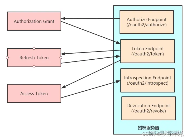 - 授权服务器通过Authorization Endpoint进行授权,并通过AuthorizationServerTokenServices生成授权码并返回给客户端。