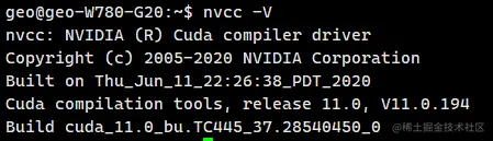 检查安装cuda是否成功:nvcc -V,如下图已经变为11.0了