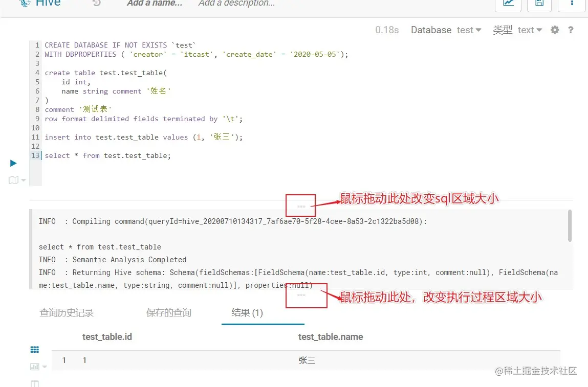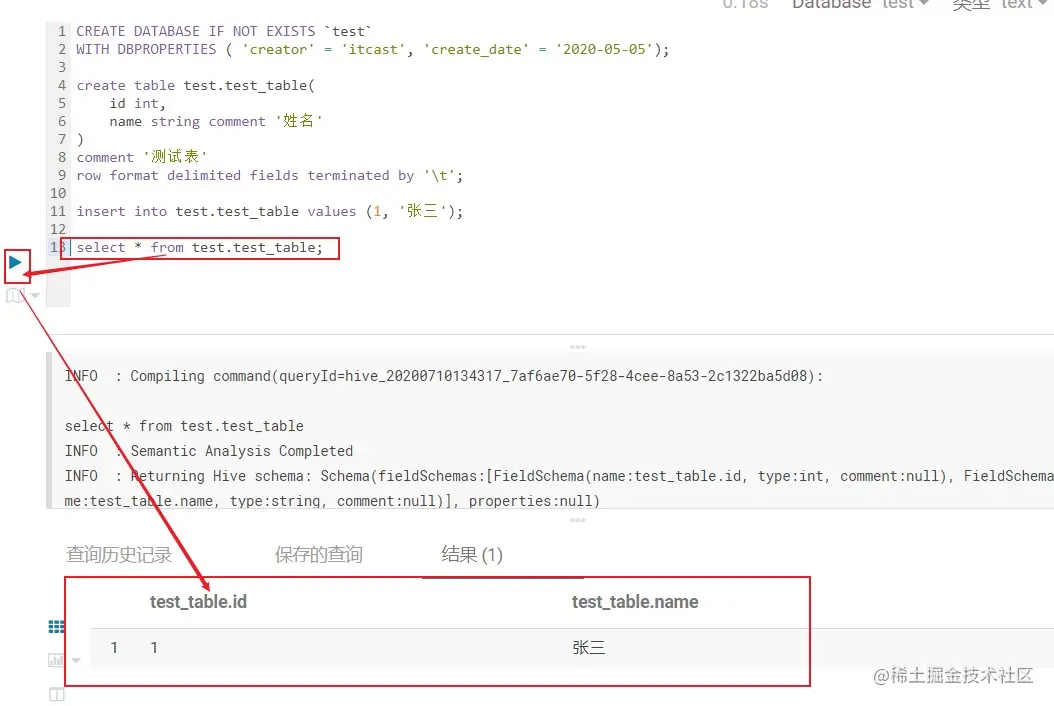 | create table test.test_table( id int,name string comment '姓名')comment '测试表'row format delimited fields terminated by '\t'; |