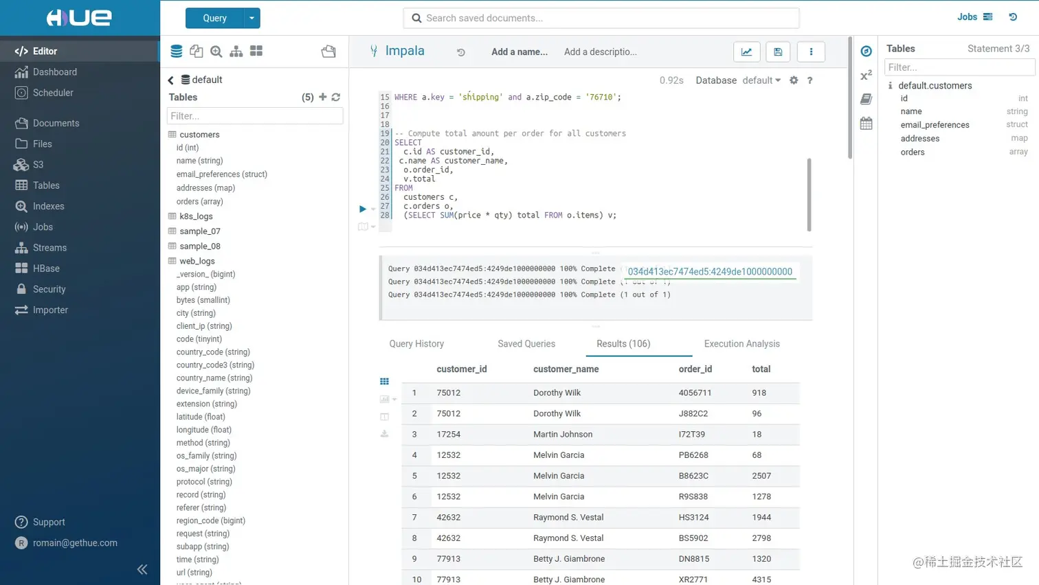 Hue提供的这些功能相比Hadoop生态各组件提供的界面更加友好,但是一些需要 debug的场景可能还是要使用原生系统才能更加深入的找到错误的原因。