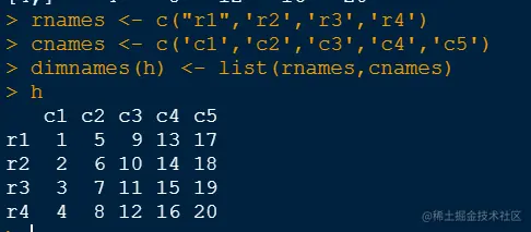 Dinames参数可以通过一个列表,指定矩阵行和列的名字: