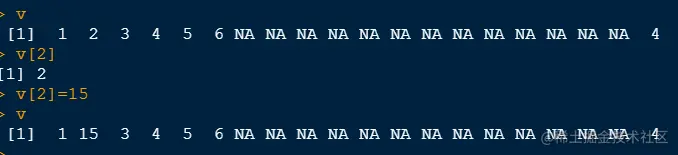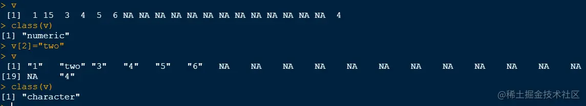但是注意这里是数值型的向量,我们不能赋值给字符串,会把整个向量变成字符型向量