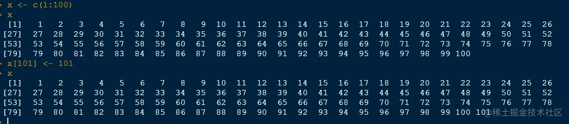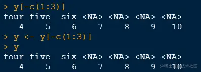 如果想删除整个向量,可以直接使用 rm() 函数,如果想删除某个函数,可以直接采用负整数索引的方式: