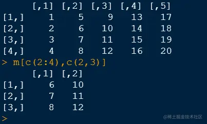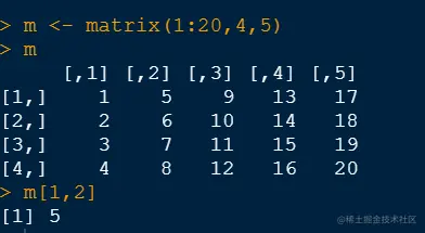 还可以创建字符型和逻辑型的数组,那么创建了矩阵,要如何访问矩阵的数据呢,下面是矩阵的索引: