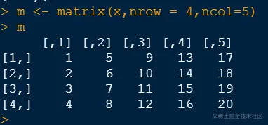 行数和列数的分配要满足分配的条件,如果只给出一个行或者是一个列,R会自动进行分配,可以通过byrow来指定按行还是按列进行排列: