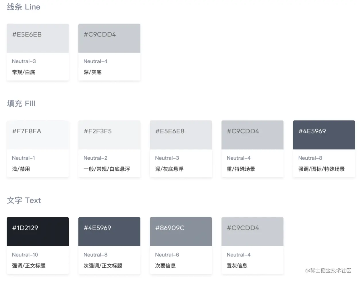 主要作用调和色彩搭配,衬托主色及其他色彩,同时拉开内容层次,使用户更专注于内容。常用于文字、背景、图标、边框和分割线等元素。
