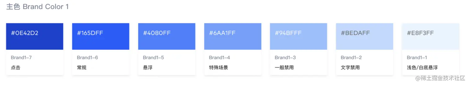 常用于主要按钮和文字、重点操作状态、高亮提醒、空状态等。