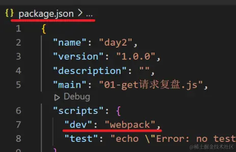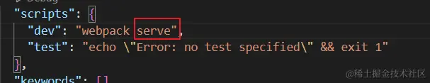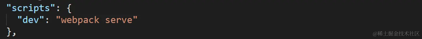 1.修改 package.json -> scripts 中的 dev 命令如下(webpack后面加 serve)