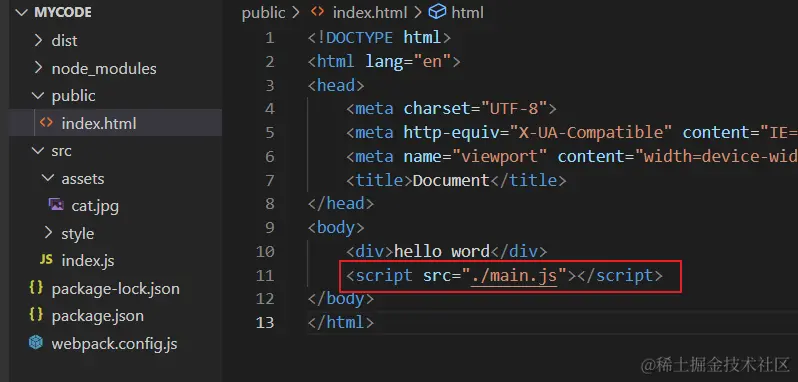 作用:HtmlWebpackPlugin可以帮助我们生成一个html,并自动引入我们的js