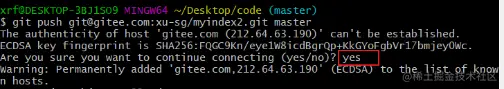 例子:git push git@github.com:autumnFish/test.git master 如果第一次使用,需要填写github|gitee的用户名和密码